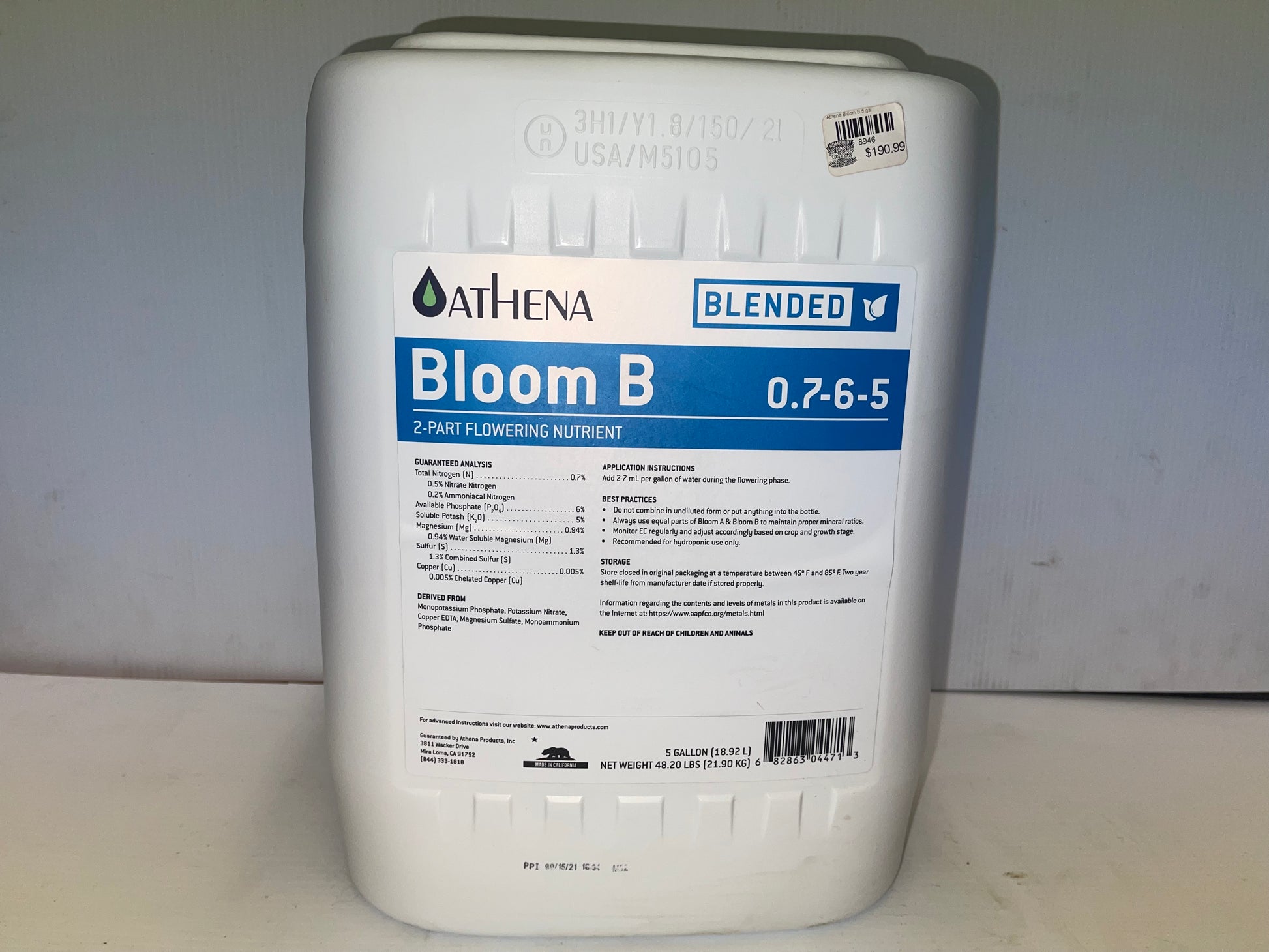 Athena Bloom B is a simple and clean 2-part formula designed for the flowering stage of growth for fruit and flower-producing plants. We blend top of the line macronutrients and chelated micronutrients to achieve greater nutrient uptake ability across a wider pH range in any combination of grow method, water-type and media.