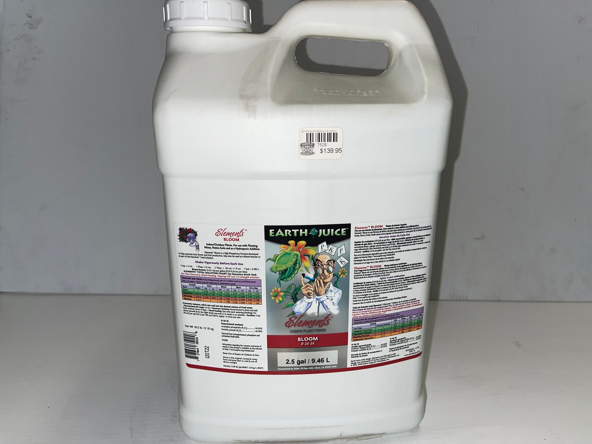 Earth Juice Elements Bloom Liquid “High Phosphorus” formula helps to promote budding, flowering and the production of essential oils, resins and fragrances of flowers and herbs Versatile and easy to use Can be used as a bloom booster or as a part of the Elements Total Multi-Part Plant Nutrient System For use on indoor or outdoor plants in soil and hydroponic systems