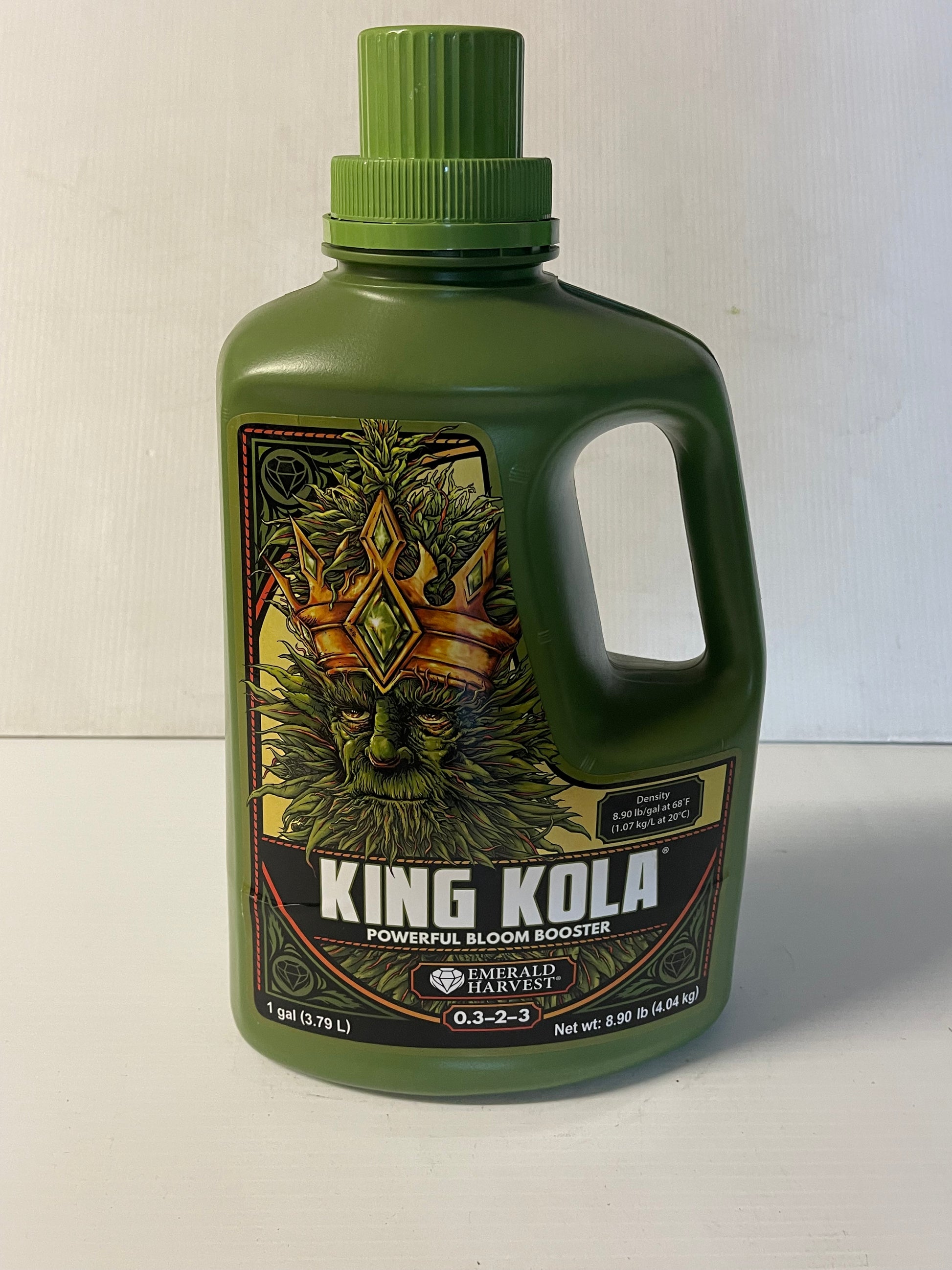 King Kola: USE KING KOLA POWERFUL BLOOM BOOSTER TO: Encourage prolific flowering and massive, weighty blooms. Maximize budding, structural floral development and ripening for heavier harvests. Treat plants to naturally occurring, vegetable-based proteins. Get the most out of every bud in the garden for a prolific flowering phase and a heavy harvest with Emerald Harvest’s unparalleled bloom booster. King Kola is a 3-in-1 bloom booster, designed to maximize budding, structural floral development and ripening for heavier harvests. It’s high in phosphorus and potassium, so using King Kola helps drive budding faster, easier and better than using base nutrients alone. King Kola has a precise P:K ratio for optimal budding, flowering and ripening and it also contains a small amount of nitrogen, which helps increase yields. Another key ingredient that makes King Kola such a powerful bud builder is L-form amino acids, derived from hemp seed. L-amino acids act as natural chelators, so plant roots can soak up the full amount of nutrients they need to produce a satisfying yield. They encourage plant metabolisms to work more efficiently, so there’s little waste of the valuable nutrients being fed to the crops. In turn, this drives buds growers will be proud of.