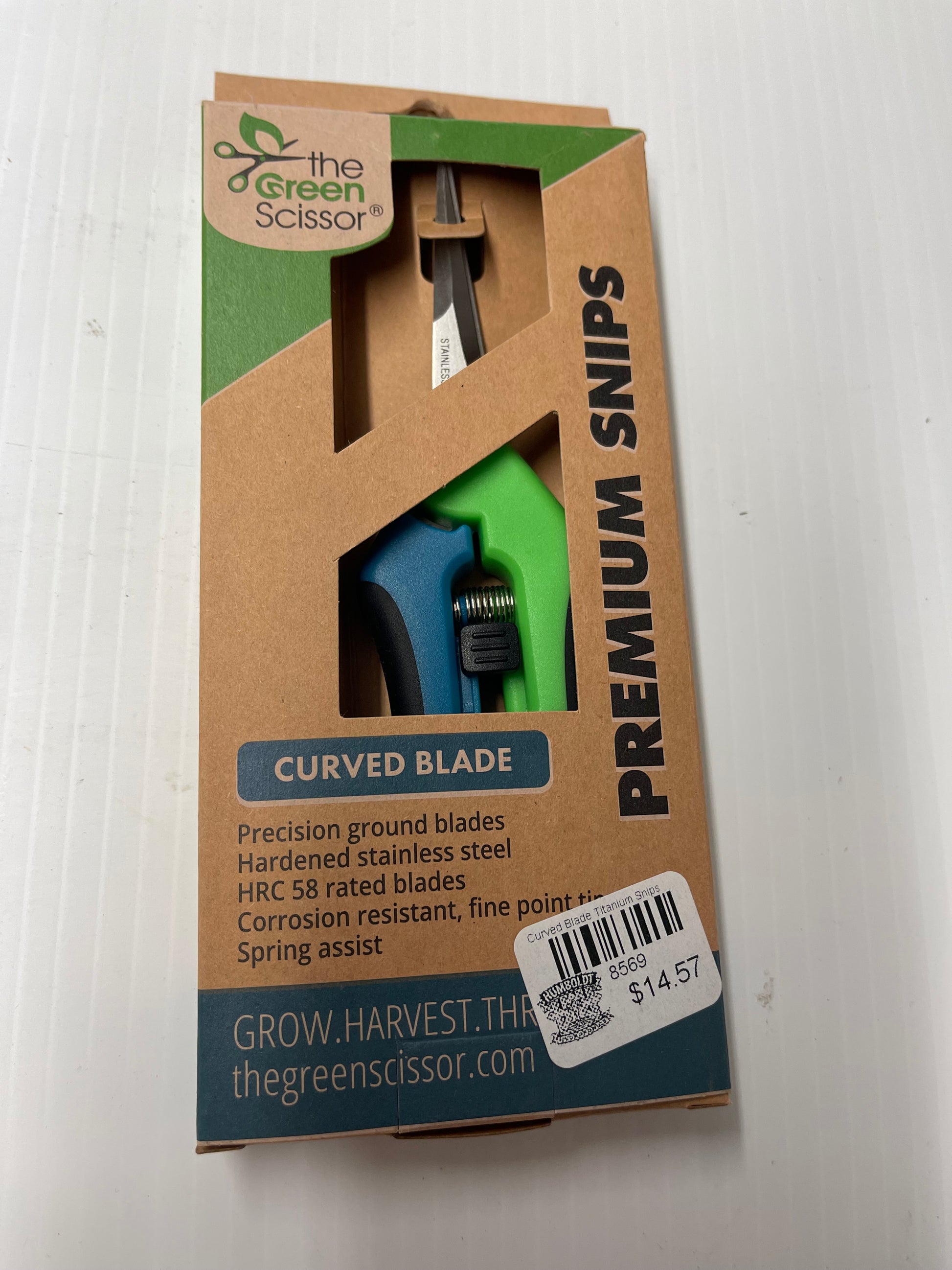 TGS PREMIUM CURVED blade snips feature fully hardened German stainless steel blades with a Rockwell Hardness rating of 58HRC. This is the same hardness you would find on high-end pocket knives like Buck and Spyderco. CURVED blades are the preferred style for some people for maximizing control and agility when trimming or sculpting botanicals.