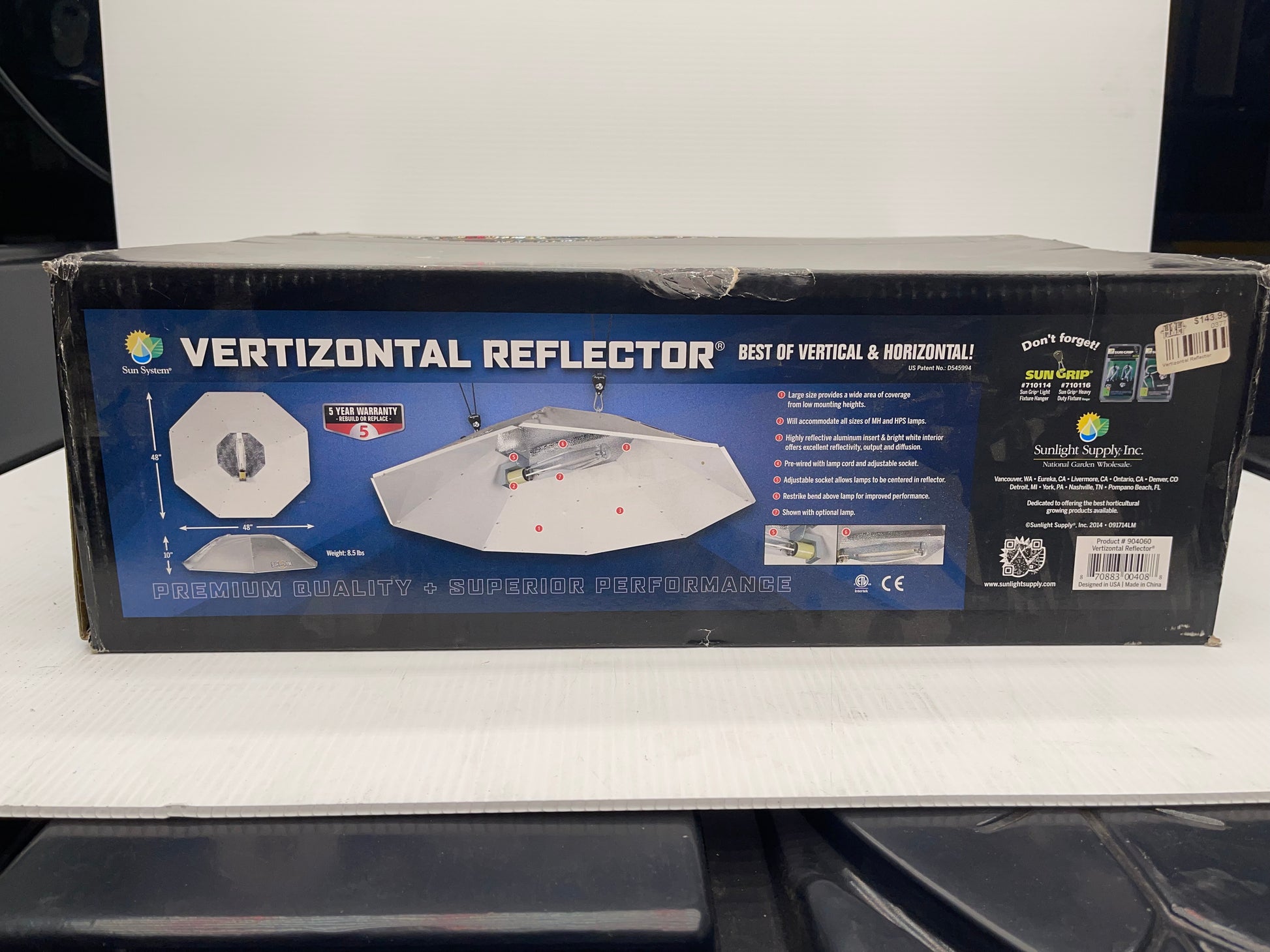 Excellent for larger growing areas! The Vertizontal Reflector by Sunlight Supply covers a wide swath from low mounting heights. Features a large parabolic shape that can be mounted closer to plants thus increasing light levels.
